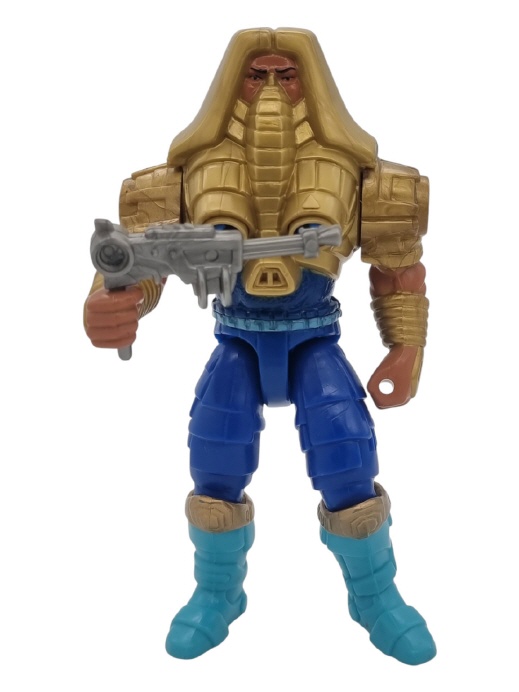 Hierbei handelt es sich um eine Figur mit der silbernen Waffe von Mattel Italy, die man nicht oft findet.Auch kleine Farbnuancen, wie an der Stoßszene erkennbar, verleihen ihr einen individuellen Charakter. Eine schöne und ungewöhnliche Variante, die in keiner Sammlung fehlen sollte.