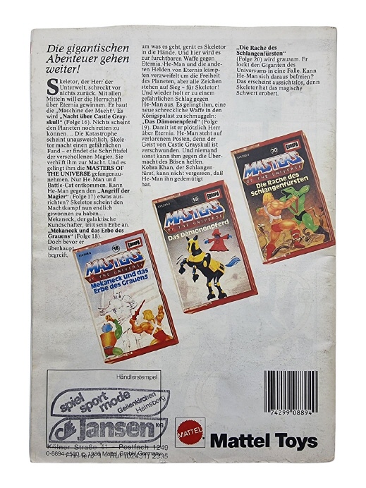Original Masters of the Universe Werbeheft im A5-Format aus der großen MotU-Zeit der 80er Jahre. Diese Hefte lagen damals in Spielwarenläden kostenlos zum Mitnehmen aus, ähnlich wie heutige Spielzeugkataloge. Viele erinnern sich noch daran: Man nahm das Heft mit nach Hause, blätterte durch die Figuren und Fahrzeuge, kreuzte seine Favoriten an oder malte darin herum, während man davon träumte, welche Figuren als nächstes ins Kinderzimmer einziehen. Genau deshalb sind diese Hefte heute so beliebt. Sie bringen ein Stück echte MotU-Kindheit zurück und zeigen die Figuren, Fahrzeuge und Playsets so, wie man sie damals im Laden entdeckt hat. Die A5-Werbehefte erschienen zwischen 1984 und 1988 in verschiedenen Ausgaben und gehören heute zu den schönen Zeitdokumenten der MotU-Ära. Ein tolles Sammlerstück für alle Masters of the Universe Fans, das sofort wieder Erinnerungen an das damalige Kinderzimmer weckt.