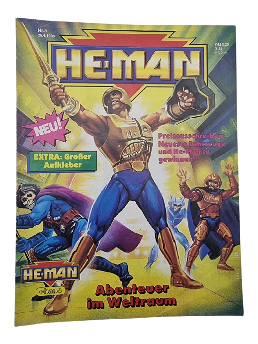 Ein historischer Moment in der deutschen MOTU-Comicgeschichte: Ausgabe 4 (1989) erschien noch unter dem klassischen Titel Masters of the Universe, während bereits mit Ausgabe 5 (1989) der Wechsel zu He-Man – New Adventures vollzogen wurde. Damit begann offiziell die futuristische Fortsetzung der legendären Reihe – direkt im laufenden Jahrgang. Dieser fließende Übergang macht genau diese Hefte zu besonders spannenden Sammlerstücken. Wer die Entwicklung von Eternia bis in die Neue Dimension komplett erleben möchte, kommt an diesen Ausgaben nicht vorbei. Sichert euch hier ein echtes Stück deutscher MOTU-Comicgeschichte!