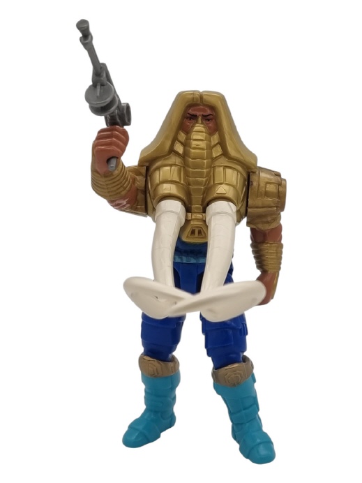 Hierbei handelt es sich um eine Figur mit der silbernen Waffe von Mattel Italy, die man nicht oft findet.Auch kleine Farbnuancen, wie an der Stoßszene erkennbar, verleihen ihr einen individuellen Charakter. Eine schöne und ungewöhnliche Variante, die in keiner Sammlung fehlen sollte.