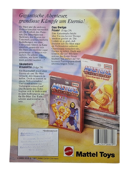 Original Masters of the Universe Werbeheft im A5-Format aus der großen MotU-Zeit der 80er Jahre. Diese Hefte lagen damals in Spielwarenläden kostenlos zum Mitnehmen aus, ähnlich wie heutige Spielzeugkataloge. Viele erinnern sich noch daran: Man nahm das Heft mit nach Hause, blätterte durch die Figuren und Fahrzeuge, kreuzte seine Favoriten an oder malte darin herum, während man davon träumte, welche Figuren als nächstes ins Kinderzimmer einziehen. Genau deshalb sind diese Hefte heute so beliebt. Sie bringen ein Stück echte MotU-Kindheit zurück und zeigen die Figuren, Fahrzeuge und Playsets so, wie man sie damals im Laden entdeckt hat. Die A5-Werbehefte erschienen zwischen 1984 und 1988 in verschiedenen Ausgaben und gehören heute zu den schönen Zeitdokumenten der MotU-Ära. Ein tolles Sammlerstück für alle Masters of the Universe Fans, das sofort wieder Erinnerungen an das damalige Kinderzimmer weckt.