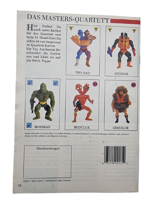 Original Masters of the Universe Werbeheft im A5-Format aus der großen MotU-Zeit der 80er Jahre. Diese Hefte lagen damals in Spielwarenläden kostenlos zum Mitnehmen aus, ähnlich wie heutige Spielzeugkataloge. Viele erinnern sich noch daran: Man nahm das Heft mit nach Hause, blätterte durch die Figuren und Fahrzeuge, kreuzte seine Favoriten an oder malte darin herum, während man davon träumte, welche Figuren als nächstes ins Kinderzimmer einziehen. Genau deshalb sind diese Hefte heute so beliebt. Sie bringen ein Stück echte MotU-Kindheit zurück und zeigen die Figuren, Fahrzeuge und Playsets so, wie man sie damals im Laden entdeckt hat. Die A5-Werbehefte erschienen zwischen 1984 und 1988 in verschiedenen Ausgaben und gehören heute zu den schönen Zeitdokumenten der MotU-Ära. Ein tolles Sammlerstück für alle Masters of the Universe Fans, das sofort wieder Erinnerungen an das damalige Kinderzimmer weckt.